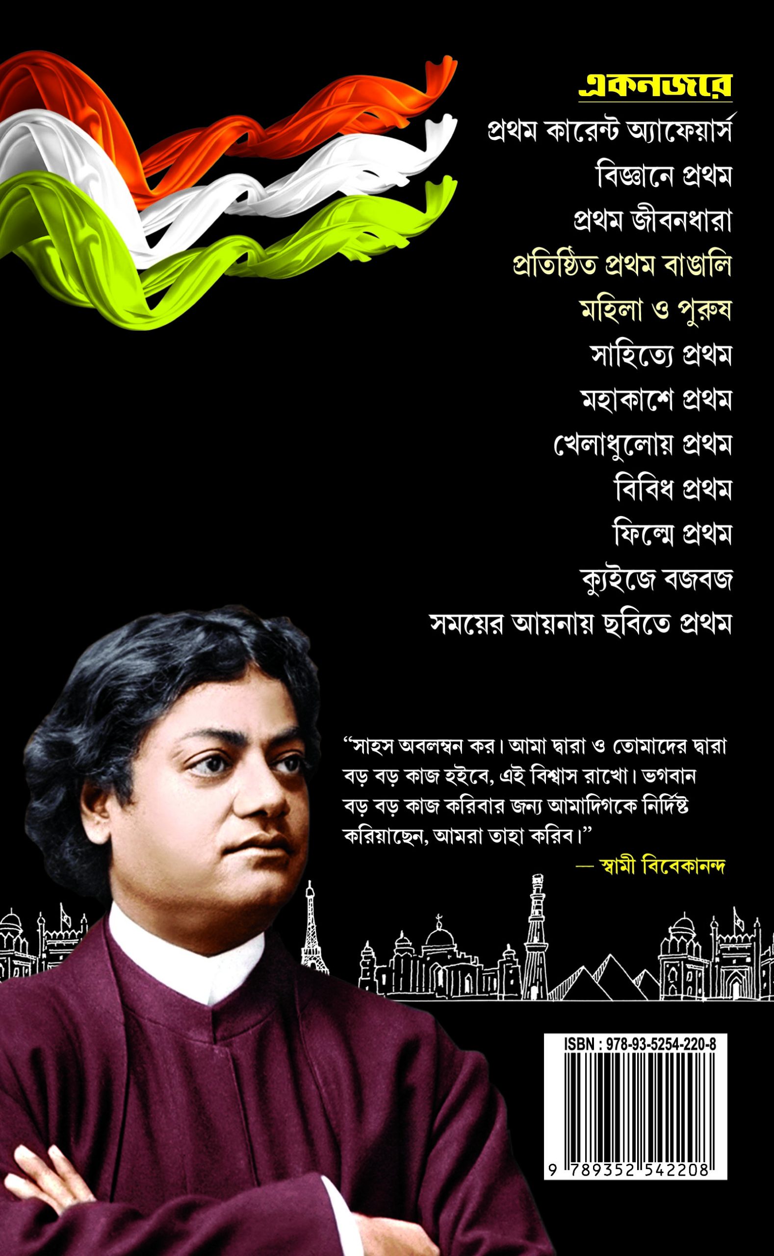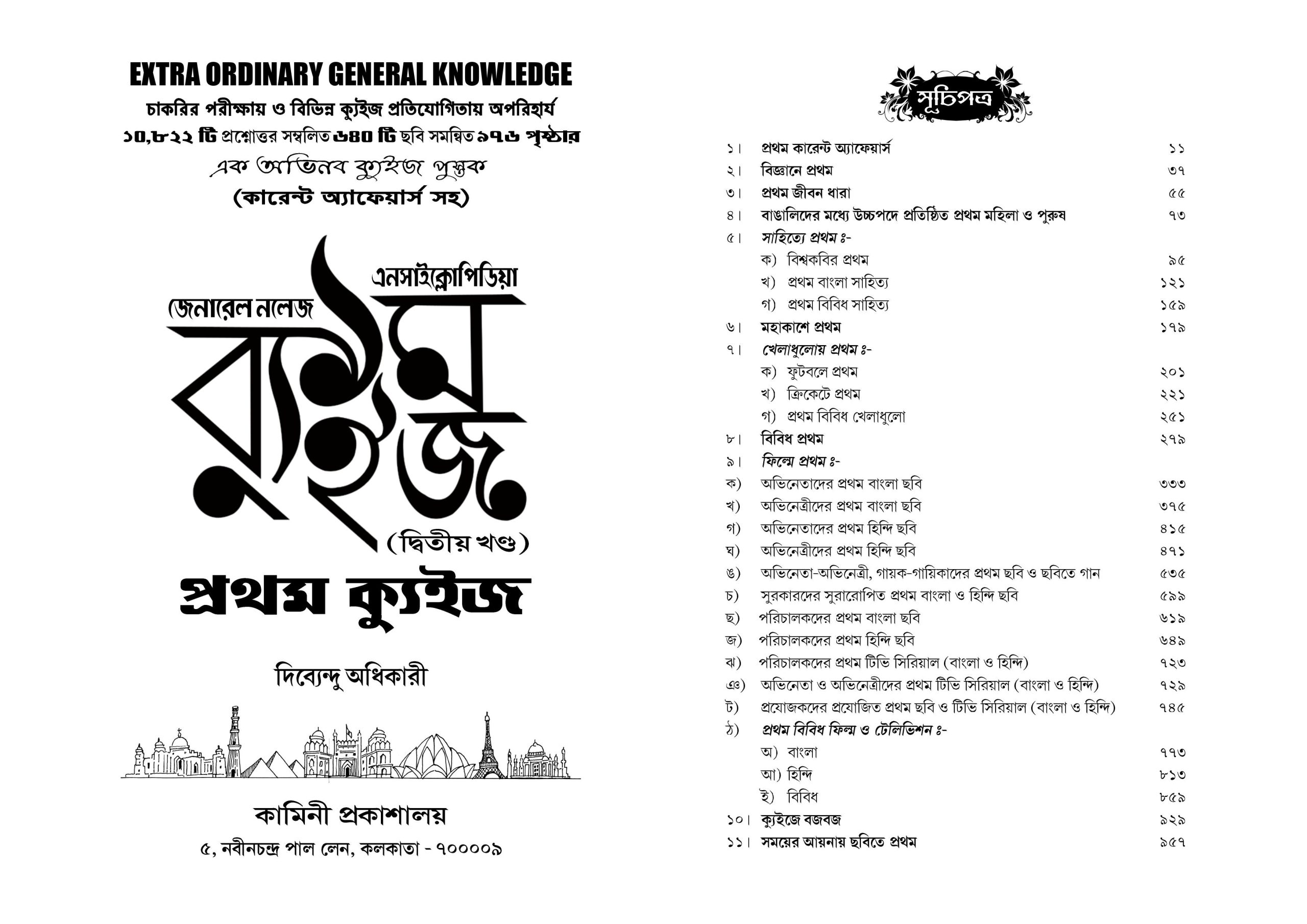 First Current Affiers, First in Science, First in Space Adventure, First Bengali Female & Male, First Film of Actresses & Actor, First in Film, First in movies Miscellaneous First, First in Literature: Rabindranath Tagore’s First, First in Bengali Literature, First in Miscellaneous Literature, First in Sports: First in Football, First in Cricket, First in others sports. Also, a special quiz section on Budge Budge, a historical city in South 24 Parganas (native place of the author). The book ends with a series of pictures while depicting a trail of others incidents.